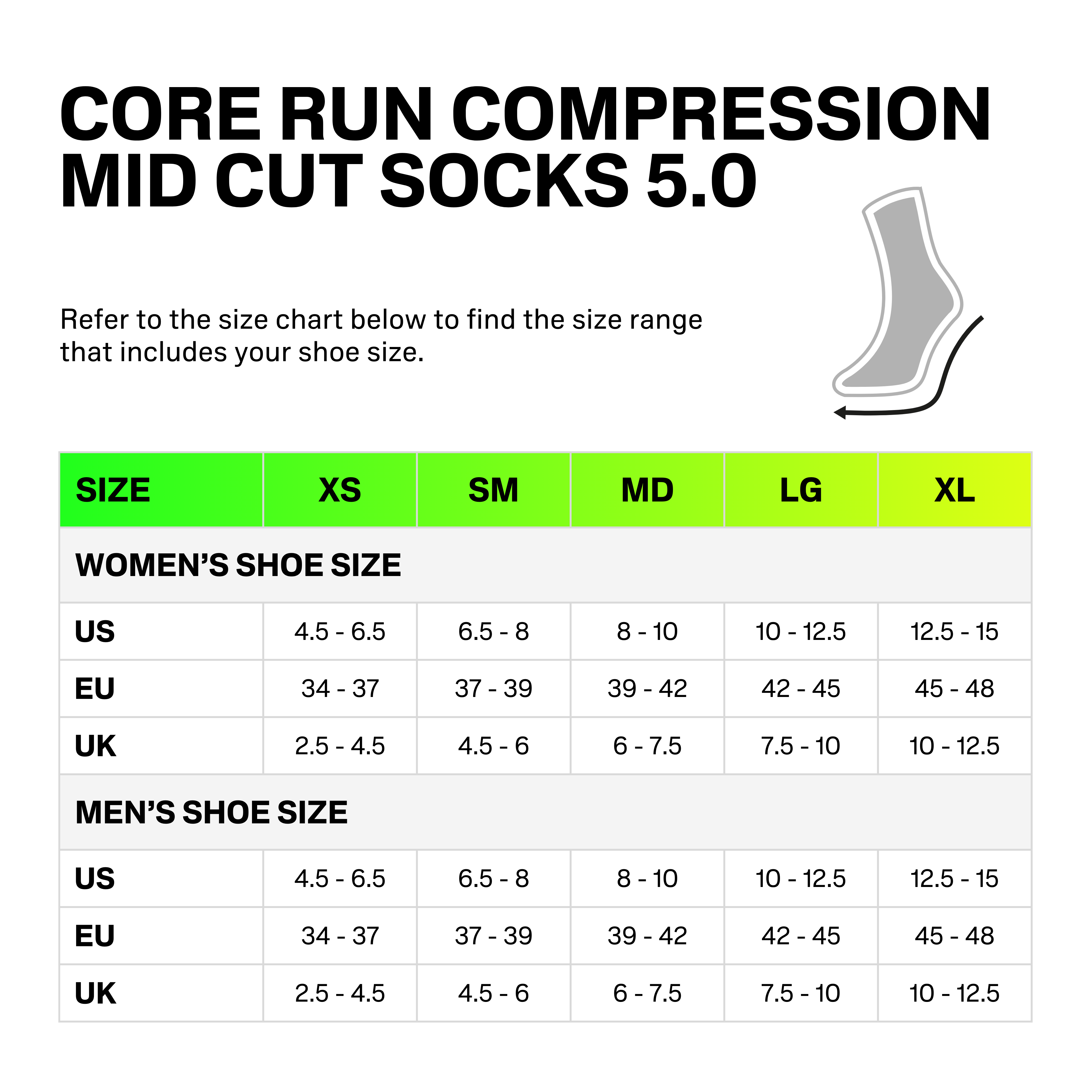 The CEP Core Run Mid Cut Compression socks are made for every runner and every run. Engineered in Germany using circular knitting technology, they offer precisely controlled zones of activation and support throughout with benefits including enhanced joint and muscle stabilization and a close fit to protect against chafing and blisters on runs. Shock-absorbing anatomical cushioning and 3D anti-slip technology allow for greater comfort and control. Strategic mesh zones, airflow channels and moisture-wicking fabric provide optimal heat and moisture regulation.