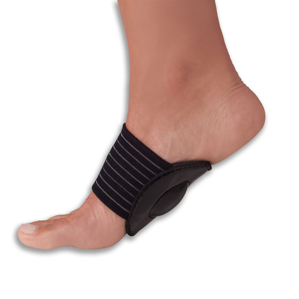Relieve foot pain related to plantar fasciitis, metatarsalgia, flat feet, fallen arches, and heel pain. protect.strutz pro maintains the arch of your foot while absorbing shock as you move. The gel-foam core supports the foot arch by helping correct foot posture upon impact as you walk or run. Comfortable and effective, one size fits all men's and women's feet.