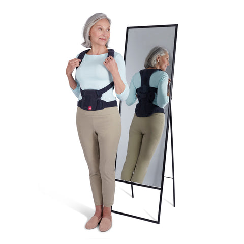 Evidence based, spinal orthoses to increase core muscle strength, reduce kyphosis, decrease pain, increase vital capacity and improve daily life for patients suffering for the symptoms of osteoporosis or hyper kyphosis impacting the spine. Spinomed utilizes a unique aluminum posterior panel that is cold formable to match the patient's spinal curves and can be adjusted as the patient condition improves. Features include The innovative pivot joint improves comfort and prevents migration. The shoulder straps are easy to fit and comfortable to wear. The moldable posterior panel adds stabilization. This item replaces Spinomed and Spinomed A/P. For patients needing added anterior stability, add the anterior panel SL11321.