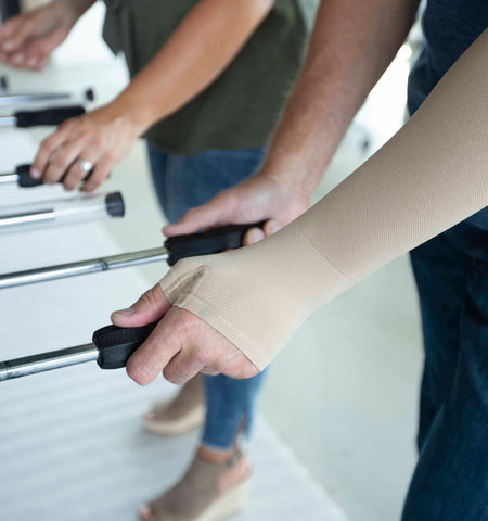The mediven harmony seamless gauntlet delivers a simple and pleasant therapy experience for comfortable everyday wear. Our seamless technology gives patients the freedom and confidence to use their hands and fingers without restricting movement. This ready-to-wear compression hand piece effectively reduces the accumulation of fluid in the hand for comfortable relief. Available in 20-30mmHg and 30-40mmHg compression classes to fit every patient's needs.